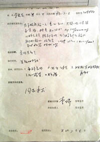 李洪志曾住院手術(shù)(一) ![]() 8月3日,吉林省人民醫(yī)院發(fā)現(xiàn)李洪志曾在該醫(yī)院做過闌尾炎手術(shù)的住院病歷。李洪志在1984年7月8日早晨突 發(fā)急性化膿性闌尾炎,住進(jìn)吉林省人民醫(yī)院普通外科,發(fā)燒38.9度,于當(dāng)天下午實(shí)施闌尾切除手術(shù),住院10天。由于當(dāng) 時(shí)醫(yī)生筆誤,錯(cuò)將李洪志寫作“李宏志”,根據(jù)病歷上的患者年齡、工作單位、家庭住址及家屬(李妻)的手術(shù)簽字,可確定 患者即李洪志。這是李洪志手術(shù)時(shí),其妻簽署的術(shù)前文件。經(jīng)公安部門鑒定,簽字確為李洪志妻子李瑞親筆所簽。張寶江攝( 新華社稿 傳真照片) |