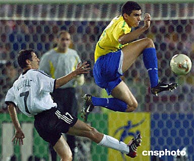 圖:世界杯德巴決戰(zhàn) 盧西奧騰空躍起阻擋對(duì)手 2002年06月30日 19:49 ![]() 6月30日2002韓日世界杯決賽巴西與德國(guó)隊(duì)的決賽在日本橫濱國(guó)際競(jìng)技體育場(chǎng)進(jìn)行,上半場(chǎng)比分為0:0。圖為巴西隊(duì)盧西奧騰空躍起阻擋德國(guó)前鋒諾伊維爾。