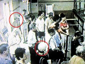 北京懸賞萬元征集三元橋銀行劫案嫌犯線索(圖) 2002年08月04日 12:31 ![]() 兩名嫌疑人假作儲戶排隊觀察儲蓄所內周圍情況 ![]() 持刀向柜臺內喊話,另一人沖向柜臺出入口 中新網北京8月4日消息:7月31日上午9時35分左右,位于北京朝陽區三元東橋的中國工商銀行三元橋南儲蓄所發生了一起持槍搶劫案,兩名犯罪嫌疑人搶劫未遂逃跑。 據京華時報報道,前天,記者在望京、三元橋等地的居民小區看見了警方張貼的協查通報。目前,根據相關資料,案件中現場兩名嫌疑人的特征已被掌握,警方已懸賞1萬元向市民征集有價值的線索。 兩名嫌疑人特征如下: 1.嫌疑人甲,男,25歲左右,身高1.70米左右,體瘦、圓臉、膚色較黑,頭戴白色棒球帽,上穿土黃色T恤衫,下穿灰色帶花格短褲,腳穿白色長襪,隨身帶一淺黃色袖珍挎包。該人隨身攜帶自制小口徑手槍一支。 2.嫌疑人乙,男,25歲左右,身高1.70米左右,留平頭,膚色較黑,頭戴白色棒球帽,上穿黑灰色T恤衫,下穿白色短褲,腳穿白色長襪,隨身帶有一黑色挎包。該人持刀。