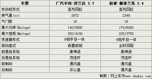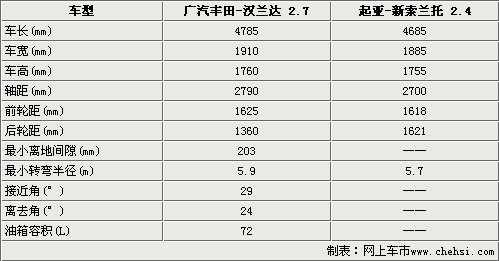 性能強悍,寬大舒適的大型SUV,一直是具有獨特品位喜歡運動且資金富裕消費者的最愛。廣汽豐田的首款SUV車型將于5月25日正式下線,并同時公布其售價。同時韓國起亞汽車也將在今年7月28日正式在中國地區推出全新的索蘭托車型。這兩款車型無論從動力系統還是車身尺寸方面都屬于同一級別的車型。為了能讓中國消費者可以更加清楚的了解這兩款全新車型,下面我們將漢蘭達和新索蘭托放在一起來做一個全方位的對比。詳細的告訴您這兩款車型的各自特點。