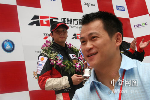 9月14日11時(shí),AGF亞洲方程式國(guó)際公開賽08賽季上海站決賽在上海國(guó)際賽車場(chǎng)舉行,在上午首回合比賽結(jié)束后,賽事主辦方特意請(qǐng)來了奧運(yùn)冠軍、中國(guó)舉重名將張國(guó)政為獲得亞軍的選手頒獎(jiǎng)。在頒獎(jiǎng)現(xiàn)場(chǎng),張國(guó)政自爆兒時(shí)的夢(mèng)想就是當(dāng)一名賽車手。