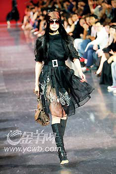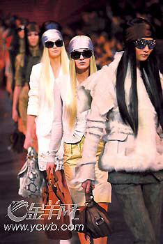 上月在上海舉行的Dior2006-2007秋冬秀,將半年后的秋冬風(fēng)潮率先帶到我們身邊。鑲滿人工碎鉆的超大墨鏡,幾乎將模特的臉遮住,讓挑剔的鏡頭分辨不出,誰是呂燕,誰是樂基兒。這讓人印象深刻的安排,隱約代表著Dior整晚的野心:事先大肆張揚(yáng)的哥特風(fēng),卻蘊(yùn)涵著不羈的壞女孩成分,從色彩到材質(zhì),都在悄悄地起著變化;蛘,這就是新一輪的時尚變革。