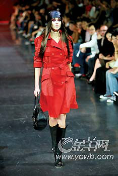 開場白的黑色系列,偶爾閃出嬉皮味道極重的反光感,那是臉無血色的美麗訴說;與黑色相反的白色,并沒有純粹如春夏系列的爛漫,相反多了幾分質(zhì)樸感,同樣也許是材質(zhì)不同所造就的;而搶眼的烈紅就增添了一些猶如童話般的魅力,美得叫人吃驚;最后壓軸登場的紫色長裙由超模琦琦演繹,色彩的幻變至此,已經(jīng)完全達(dá)到一個新高度。 (黃嘉麗)