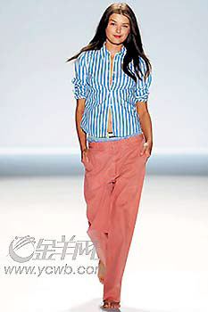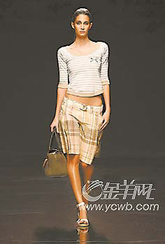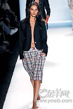 而更加隨意的Tommy Hilfiger,則將浪漫的海灘風情演繹得更隨性,以寬大有型的格仔短褲搭配隨意敞開的休閑襯衫,簡單明了,一頭長發和敞開的領口是最具風情的女性化標簽。