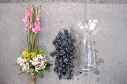 3花器中放入石子固定。