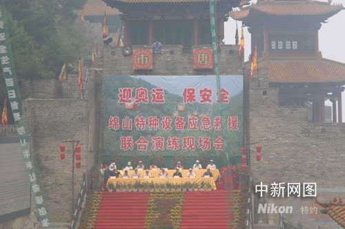 日前,迎奧運保安全綿山特種設備應急救援聯合演練現場會在綿山龍頭寺舉行。