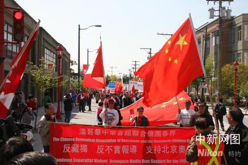 本次活動由溫哥華中華會館于上周發起,得到當地新老僑團的廣泛響應。本預計將有千人參加,但今天現場人潮涌動,當地華人扶老攜幼,高舉抗議條幅,揮舞中加兩國國旗。華文報章《加中時報》推出印有北京奧運火炬圖片大連版,供參加集會者卷成紙筒奧運火炬,“護奧運”氣氛格外熱烈。