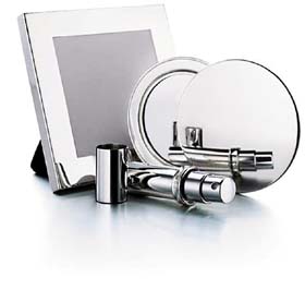 多款純銀禮品,糅合時尚與經(jīng)典美態(tài),流線形磨光表面刻有紀(jì)念Tiffany創(chuàng)辦年份的T&CO 1837印記。本系列的實用精品包括方形相架、旋扭開蓋式小化妝鏡和亮滑噴霧器,每件精品皆可刻字銘記,令日常生活平添一份雅意。