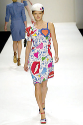 Rebecca Taylor的乖乖女設計,讓我們看到了充滿學生味的情竇初開,同樣將愛心做成口袋的還有Eley Kishimoto,將絲綢和蕾絲拼合而成的短裙,那個醒目的紅色愛心不時跳躍在模特輕松的步伐上。愛心的另一種表現則被設計師們巧妙地運用在了腰帶上,Luella和Moschino的愛心都不約而同地被安置在了腰帶上,原來對現代女生而言不用金箭也是可以將愛心牢牢綁住的。