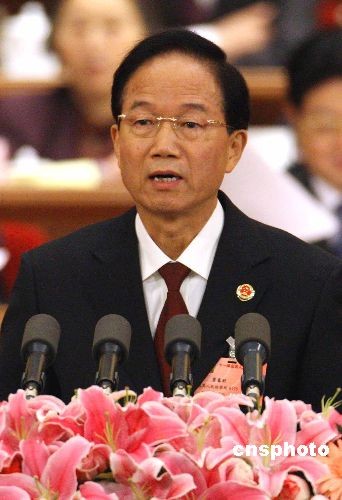圖:賈春旺在全國人大第三次全體會作高檢工作報告