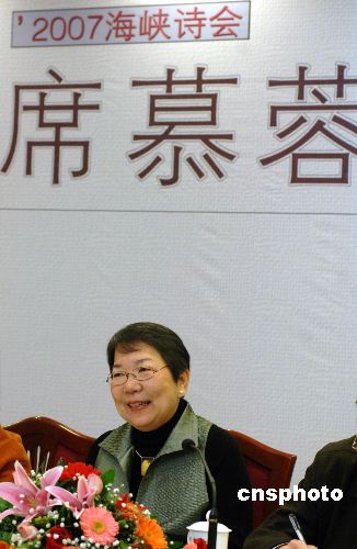 十二月二十二日,由福建省文學藝術界聯合會、《臺港文學選刊》雜志社、福建省文學藝術對外交流中心主辦的2007海峽詩會“天和地諧,人和詩諧——席慕蓉海峽西岸行”在福州拉開序幕,并于當天在福建會堂舉行了席慕蓉作品研討會。圖為席慕蓉參加研討會。中新社發 王東明 攝