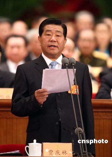 3月14日上午,全國政協十一屆一次會議在北京人民大會堂閉幕。全國政協主席賈慶林在閉幕會上講話。中新社發 盛佳鵬 攝