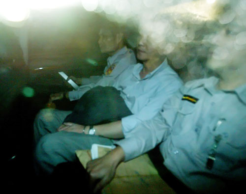 臺灣特偵組偵辦“國務機要費案”及陳水扁家庭疑洗錢案,七日傳喚扁妻吳淑珍胞兄吳景茂(中)到案。訊后,以涉嫌違反“洗錢防制法”且有串證、串供之虞,移送臺北地方法院,審理后裁定羈押禁見。(圖:“中央社”)