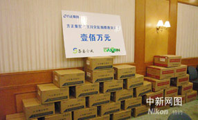 凝聚著臺資企業(yè)富士康科技集團及其六十萬員工愛心的六千萬元人民幣善款,今天在此間由富士康集團總裁郭臺銘的特別顧問張整魁先生,捐贈給遭受地震災(zāi)害的四川災(zāi)區(qū)。這是目前四川省收到的最大一筆臺商捐款。……