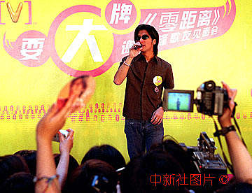 歌星謝霆鋒在北京與歌迷見面。中新社記者:錢興強(qiáng) 2000年6月18日 08:54 ![]() 由 「V」音樂臺主辦的“零距離”謝霆鋒與北京歌迷見面會(huì),17日在北京恒基中心舉行。上千名年輕歌迷將演出場地圍團(tuán)圍住,聆聽謝霆鋒演唱的《謝謝你的愛1999》和《只要為你活一天》等歌曲。中新社記者:錢興強(qiáng)