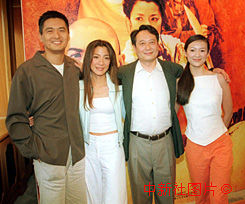 導演李安、影星周潤發、楊紫瓊、及章子怡26日在香港出席影片“藏龍臥虎 ”記者會。中新社傳真 鄧慶樂 攝