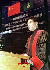 ‘二十日下午,澳門司法界人士為進入特區成立后的第一個司法年度而舉行隆重典禮,圖為檢察長何超明在典禮上發表講話。中新社傳真宗金柱攝