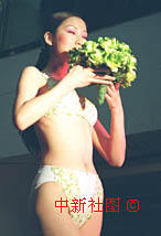 一名模特在北京的天橋上,以如花似玉為主題展示女性秋冬季節貼身內衣的魅力。中新社圖 張宇 攝