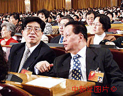 肖揚與韓杼濱出席九屆全國人大三次會議預備會 2000年3月5日 11:51 ![]()