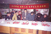 北京供電局職工參加“反對邪教、保障人權”百萬公眾簽名活動。