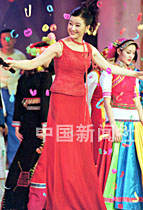 解放軍人大代表、青年歌唱家宋祖英,七日晚在人大政協聯誼晚會上登臺獻唱。中新社記者 錢興強 攝