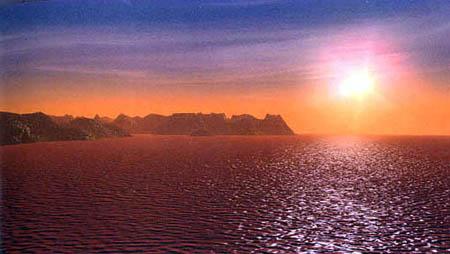 圖文:科普大片《宇宙與人》全文解說(shuō)詞 2001年3月27日 11:03 ![]() 在地球的某個(gè)時(shí)期,海洋中充滿(mǎn)了被氧化的鐵銹,海水呈現(xiàn)出紅色 物質(zhì)的宇宙能夠演化出生命,目前我們惟一所知道的就是我們自己的太陽(yáng)系,但準(zhǔn)確地說(shuō),生命很吝嗇地只選擇了它的第3顆行星———地球,生命在這顆星球上誕生并且改造這顆星球長(zhǎng)達(dá)近40億年。從生態(tài)上看,地球的美麗是獨(dú)一無(wú)二的,然而今天的地球因?yàn)橛辛巳祟?lèi),就不僅是生態(tài)星球,同時(shí)還是一顆文明星球。 地球上惟一直立行走的智能生物———人類(lèi),今天已經(jīng)非常輕松地生活在這顆行星上,但是,從古老文明走到現(xiàn)代文明,人類(lèi)付出了巨大的代價(jià)。而二者之間的跨越的關(guān)鍵,恰恰要取決于人類(lèi)認(rèn)識(shí)宇宙的深度。 望遠(yuǎn)鏡的原始創(chuàng)意 盡管有很多史前文明都顯示了人類(lèi)認(rèn)知宇宙的興趣,但在中國(guó)四川西部三星堆發(fā)現(xiàn)的3000多年前的青銅器,大概是表現(xiàn)得最執(zhí)著的了。這是一個(gè)向往飛翔的古老集體,鳥(niǎo)是他們普遍的偶像,鳥(niǎo)的眼睛被深深地崇拜著,而他們自己的眼睛,更被夸張地塑造了。這可能是人類(lèi)最早的期望通過(guò)眼睛這個(gè)器官的延長(zhǎng),而求索宇宙的向往,這也許是望遠(yuǎn)鏡的最原始的創(chuàng)意。 事實(shí)是,這種愿望終于在400多年前得到了實(shí)現(xiàn)。人類(lèi)的眼睛真的延長(zhǎng)了,望遠(yuǎn)鏡給人類(lèi)文明所起的作用,可以說(shuō)超過(guò)一切其它單件的工具,因?yàn)闆](méi)有它,就沒(méi)有可能了解天體的基本運(yùn)動(dòng),也就沒(méi)有對(duì)神的勇敢的否定,就沒(méi)有可能在天體的觀察中得到的牛頓定律,也就沒(méi)有以這個(gè)定律為基礎(chǔ)的現(xiàn)代工業(yè)社會(huì)。人類(lèi)在400多年前通過(guò)望遠(yuǎn)鏡在宇宙中獲得了駕馭物質(zhì)的法則,于是,我們的生活就從此日新月異。 太陽(yáng)是我們擁有的一顆恒星。今天,人類(lèi)對(duì)宇宙已經(jīng)看得更遠(yuǎn),理解得更深刻,這種理解使我們已經(jīng)能夠認(rèn)識(shí)宇宙作為一個(gè)整體的物質(zhì)運(yùn)動(dòng),并且更加明確地認(rèn)識(shí)到我們是物質(zhì)運(yùn)動(dòng)的結(jié)果,而宇宙中的星辰,就是全部物質(zhì)運(yùn)動(dòng)的最重要的動(dòng)力。 我們把自己擁有的一顆恒星叫做太陽(yáng),它的光輝對(duì)地球的生命是最根本的,陽(yáng)光在地球表面已經(jīng)掠過(guò)了40多億年,今天的生態(tài)就是純粹陽(yáng)光的塑造,這種塑造使得地球擁有了一個(gè)長(zhǎng)達(dá)40億年的生命鏈,這個(gè)鏈條其實(shí)就是固體的陽(yáng)光,因?yàn)樯谋举|(zhì)的含義就是把光能變成物質(zhì)的新陳代謝。 現(xiàn)在,我們可以精確地知道,這顆價(jià)值非凡的發(fā)光體非常的巨大,它的直徑相當(dāng)于110個(gè)地球,它的表面是6000度的高溫,經(jīng)過(guò)一億五千萬(wàn)公里空間的傳輸,地球只得到它的光輝的5億分之一,但這已經(jīng)足夠了。 它的質(zhì)量相當(dāng)于33萬(wàn)個(gè)地球,但盡管這么大,如果全部是煤,發(fā)出同樣的光和熱只能燒幾千年。然而,它穩(wěn)定地?zé)?0億年,是什么東西這么經(jīng)燒呢? 人類(lèi)的燃燒概念是火,用一堆樹(shù)枝燃燒幾個(gè)小時(shí),這就是我們的獲取能量的概念。這個(gè)基本的方式一直主導(dǎo)著人類(lèi)的文明,但這種燃燒根本沒(méi)有使用宇宙中真正的能量寶庫(kù)———原子核,在本質(zhì)上,木頭的燃燒只是原子們互換位置放出一些化學(xué)能,燃燒后,原子核的質(zhì)量一點(diǎn)沒(méi)有減少。 而太陽(yáng)的燃燒和篝火原理完全不同,它在讓原子核燃燒。愛(ài)因斯坦用著名的質(zhì)能轉(zhuǎn)換的公式計(jì)算出,核能量能達(dá)到普通化學(xué)能量的2000萬(wàn)倍。宇宙中最高效的核能是氫聚變成氦,也就是4個(gè)氫原子聚變成一個(gè)氦原子,這個(gè)過(guò)程可以有千分之七的物質(zhì)轉(zhuǎn)換成能量,雖然只有千分之七,但物質(zhì)的能量太大,如果把1000克氫原子中千分之七的物質(zhì)轉(zhuǎn)換成能量,就相當(dāng)于4000噸石油和6000噸煤。 在一節(jié)只能燒幾分鐘的樹(shù)枝中所蘊(yùn)藏的核能,足以把一盞100瓦的燈泡點(diǎn)亮100萬(wàn)年。 太陽(yáng)就是一個(gè)奢侈的使用核能的天體。 宇宙的物質(zhì)結(jié)構(gòu) 那么,怎樣才能燃燒原子核呢?這就要看我們宇宙的物質(zhì)結(jié)構(gòu)了。物質(zhì)本身沒(méi)有行為,而物質(zhì)中蘊(yùn)含了4種力卻決定了宇宙的一切。其中最強(qiáng)的是強(qiáng)力,它存在于強(qiáng)子之中,核能就是靠它產(chǎn)生的,但這種力只在原子核的直徑范圍起作用,所以,產(chǎn)生核能就必須讓它們相互接觸,也就是核聚變。 核聚變必須有中子,而另一種弱力,能使質(zhì)子衰變成中子,并釋放出射線,這個(gè)力是核聚變不可缺少的。 而能否使核聚變發(fā)生,關(guān)鍵卻在于電磁力,它比強(qiáng)力弱100多倍,不過(guò)它延伸得比強(qiáng)力遠(yuǎn),所以一般情況下強(qiáng)力被電磁力封閉著,如果突破不了電磁力,就不會(huì)有核聚變。其實(shí)電磁力是一種非常溫和而美好的力,它天生就有正和負(fù),永遠(yuǎn)不會(huì)過(gu