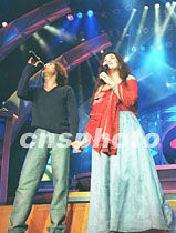 來自香港的著名流行歌手齊秦、齊豫14日晚在迎大運助申奧大型公益晚會上演唱歌曲《奧林匹克星》。中新社圖 鄭萍萍 攝