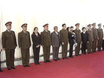 中共中央政治局常委、中國國家副主席、中央軍委副主席胡錦濤(左六)率領軍方最高層領導,二十四日在北京會見“?招l士”王偉烈士的親屬并合影留念。