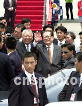 香港特區行政長官董建華等五月八日到機場迎接國家主席江澤民。中新社傳真 任海霞攝