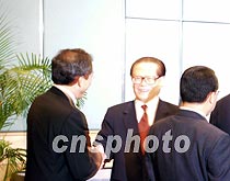 應邀出席《財富》全球論壇香港年會的中國國家主席江澤民,8日下午在香港會展中心會見了與會的世界知名企業家和香港工商界代表。江澤民與代表一一親切握手、寒暄。中新社圖 張朔 攝