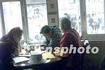 拉薩的一位喇嘛在八廓街的瑪吉阿米藏式酒吧向一位德國女孩學習英語,他則教德國女孩藏語。位于雪域高原的拉薩如今是一個國際化的城市,諸多的文化在這里交融。中新社記者 滿會喬 攝