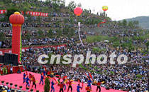 “申奧萬里行”2日到達山西大寨,二萬多名山西人在虎頭山上觀看申奧大聯歡。中新社圖 魏孝明 攝