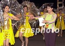 薈萃中國內(nèi)地及港、澳、臺眾多著名歌星的“同一首歌──走進(jìn)澳門”大型演唱會,將于十二日在澳門文化中心上演。圖為該演唱會總導(dǎo)演、中央電視臺MTV總制片人孟欣,在彩排時對擔(dān)任伴舞的澳門中學(xué)生進(jìn)行演出指導(dǎo)。中新社記者 宗金柱 攝