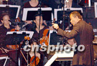 譚盾在香港特區(qū)成立四周年晚會上指揮樂團(tuán)演奏