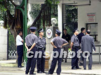 組圖:廣州警方加強美領事館的保安 2001年09月12日 10:48 ![]() 十二日清晨,美國駐廣州總領事館門前的保安工作明顯加強,這是昨天美國受到恐怖襲擊之后,廣州警方采取的有力措施。中新社圖 梁永強 攝 ![]() 美國受到恐怖襲擊之后,十二日美國駐廣州總領事館如常辦公,門前排隊等候簽證的隊伍秩序井然。中新社圖 梁永強 攝