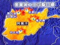 圖文:美英聯軍對阿富汗目標實施第二輪空中打擊 2001年10月09日 00:33 ![]() 阿富汗當地時間八日二十時二十八分左右,美英開始對阿富汗進行新一輪打擊,圖為美英新二輪打擊目標的示意圖。 ![]() 阿富汗當地時間八日二十時二十八分左右,美英開始對阿富汗進行新一輪打擊,圖為導彈擊中目標的場面。