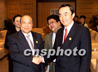 圖:石廣生會見日本經濟產業大臣 2001年10月17日 18:56 ![]() 中國對外經濟貿易合作部長石廣生十七日在上海國際會議中心會見前來參加2001年亞太經合組織(APEC)會議的日本經濟產業大臣平沼赳夫。中新社記者 毛建軍 攝 |