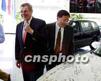 圖文:通用汽車董事長乘APEC快車"回家"記 2001年10月17日 20:57 ![]() 圖為十七日抵達(dá)上海的史密斯在親臨上海通用汽車公司時(shí)說,當(dāng)年他第一個(gè)在上海首輛別克汽車上簽名。中新社記者 潘索菲 攝