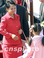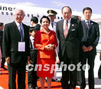 ![]() 菲律賓總統阿羅約(左)十九日中午到達上海浦東機場,她將參加二十一日的APEC領導人非正式會議。中新社圖 劉殊瑾 攝