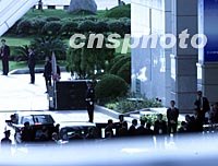 美國總統布什二十日午后乘車抵達上海APEC會議的開幕式會場。中新社記者 賈國榮 攝