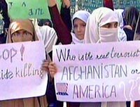 圖:巴基斯坦婦女兒童反美示威 2001年11月01日 09:46 ![]() 二百多名巴基斯坦婦女兒童三十一日走上街頭,反對(duì)美國(guó)對(duì)阿富汗進(jìn)行軍事打擊。美國(guó)對(duì)阿富汗的軍事打擊日前進(jìn)入第四周。 |