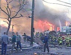 失事現(xiàn)場至少已有15名受傷民眾送附近醫(yī)院 2001年11月13日 01:19 ![]() ![]() 圖為墜機現(xiàn)場燃起的熊熊大火 中新網(wǎng)北京11月13日消息:美國航班墜毀后,紐約皇后區(qū)洛克威住宅區(qū)失事現(xiàn)場附近醫(yī)院已涌入多位因吸入濃煙而受傷的民眾。 這架空中巴士A-300型班機是于當?shù)貢r間9時15分自肯尼迪機場起飛不久墜毀。事故現(xiàn)場洛克威區(qū)是個住宅區(qū),直到中午為止,火勢仍未熄滅,但因濃煙由黑轉白,顯示火勢已經(jīng)被控制。紐約市警察已全力疏散當?shù)鼐用竦桨踩貐^(qū)。 災區(qū)附近的急診室目前至少已有15名受傷民眾,其中有2人因為吸入濃煙情況較為嚴重。 |
