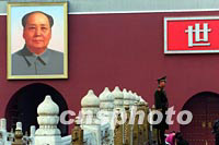 圖文:布什上午抵達北京 天安門廣場井然如常 2002年02月21日 14:14 ![]() 一位中國人民解放軍士兵二十一日上午在北京天安門前執行執勤任務,天安門廣場井然如常。美國總統布什二十一日上午抵達北京,開始為期兩天的工作訪問。中新社記者 劉殊瑾 攝