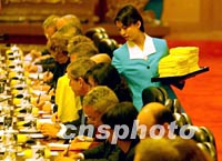圖:服務員為布什送毛巾 2002年02月21日 15:58 ![]() 一名北京人民大會堂的服務員,二十一日中午向出席中美首腦會談的布什總統送上熱毛巾。中新社記者 賈國榮 攝