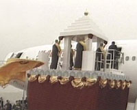 組圖:法門寺佛指舍利在咸陽機場登上專機赴臺 2002年02月23日 09:24 ![]() 機場恭送法會上,佛指舍利徐徐移向?qū)C。 ![]() 臺灣信眾在咸陽機場虔誠地恭送佛指舍利登機。 ![]() 機械平臺升高后,佛指舍利靠向機艙門。 ![]() 佛指舍利進入機艙。 ![]() 咸陽機場的佛指舍利恭送法會。 中新網(wǎng)西安2月23日消息:(記者張素平)今天上午9點整,運載佛骨舍利的“港龍航空”公司KA8943航班從陜西西安咸陽機場起飛。 此前,從早晨8:10時開始,在機場舉行了約15分鐘的恭送儀式。 運載佛指舍利和大陸佛教界護法團、護送團及臺灣佛教界恭迎團的兩架專機,將在約中午時分在香港作短暫停留,轉(zhuǎn)機后飛往臺北。 據(jù)悉,作為佛教圣物和無價國寶的佛指舍利,將在臺灣巡回瞻禮37天,之后由島內(nèi)佛界恭送之后返回法門寺。此次佛指舍利赴臺是根據(jù)臺灣地區(qū)佛教界的請求,由中央政府特別批準(zhǔn)的。這是海峽兩岸的佛門盛事。 此次大陸佛教界組成了60人護送團和20人護法團恭送佛指舍利赴臺瞻禮。臺灣佛教界表示將本著“聯(lián)合迎請,共同供奉”的原則,在臺北、臺中、高雄等地公共場所和佛教寺院供奉。