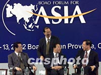 圖:中國經濟高官在博鰲亞洲論壇上談入世 2002年04月12日 19:37 ![]() 博鰲亞洲論壇首屆年會十二下午舉行議題討論會,中國高官人民銀行行長戴相龍、信息產業部長吳基傳、國家稅務總局局長金人慶、中國保險監督管理委員會主席馮曉增(由右至左)分別就各自相關行業與中國入世關系發表演講。中新社記者 滿會喬 攝