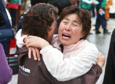 圖:遇難韓國(guó)人家屬擁抱痛哭 2002年04月15日 19:20 ![]() 失事飛機(jī)上的遇難韓國(guó)人家屬擁抱痛哭。法新社圖