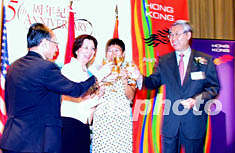 圖:香港駐紐約經貿處舉行慶香港回歸五周年酒會 2002年07月02日 14:10 ![]() 香港駐紐約經貿處七月一日晚在曼哈頓舉行慶祝香港回歸五周年酒會。圖為中國駐紐約總領事張宏喜、香港駐美總經貿專員韋玉儀、香港駐紐約經貿處處長胡寶珠、中國常駐聯合國代表王英凡(從左至右),共同舉杯慶祝。趙海燕 攝
