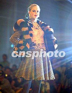 2002年青島國際時裝周六日展示俄羅斯時裝設計師扎伊采夫充滿民族美感的服飾作品。扎伊采夫是國際著名的時裝設計師,在俄羅斯被譽為美的象征。作者:毛建軍
