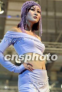模特在九月青島國際時裝周上展示中國時裝設計師設計的緊身露臍裝,這種時裝款式受到越來越多的中國大陸女青年的青睞。作者:毛建軍